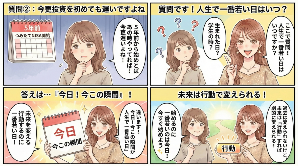 よくくる質問No2. 今更投資を初めても遅いですよね