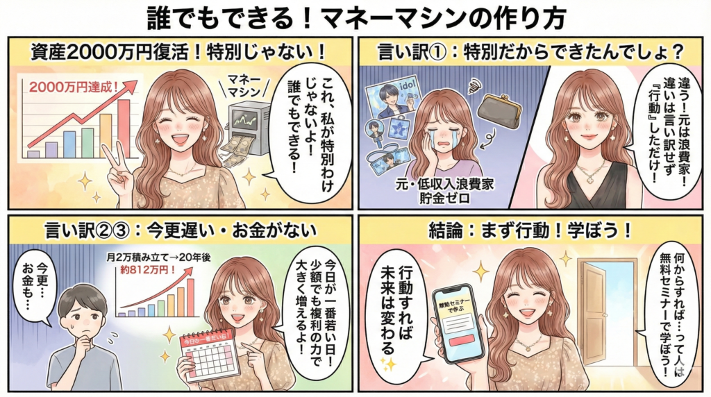 浪費家な自分を認め、推し活をしないと生きていけないことも認め、その上でできる節約、資産運用方法を学び、実践する。