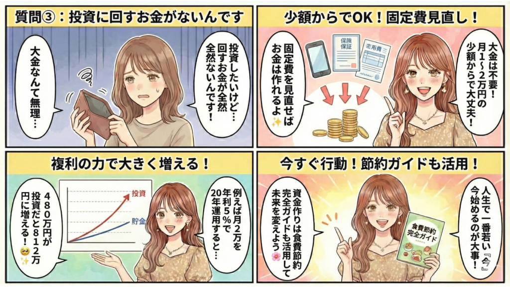 1万円とか2万円とか、固定費を見直せば出てくるお金で始めて全然大丈夫!
