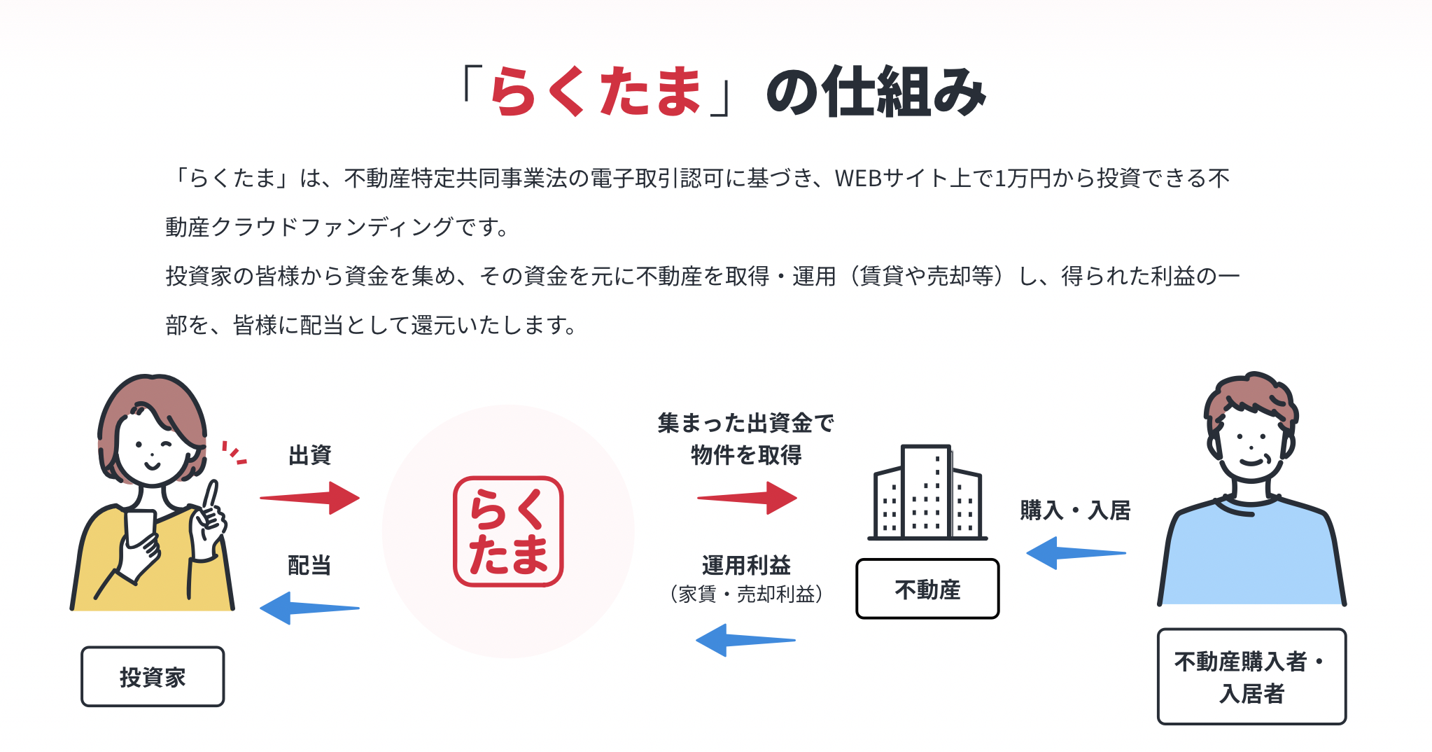 その資金で不動産を購入して運営していく仕組みのこと。