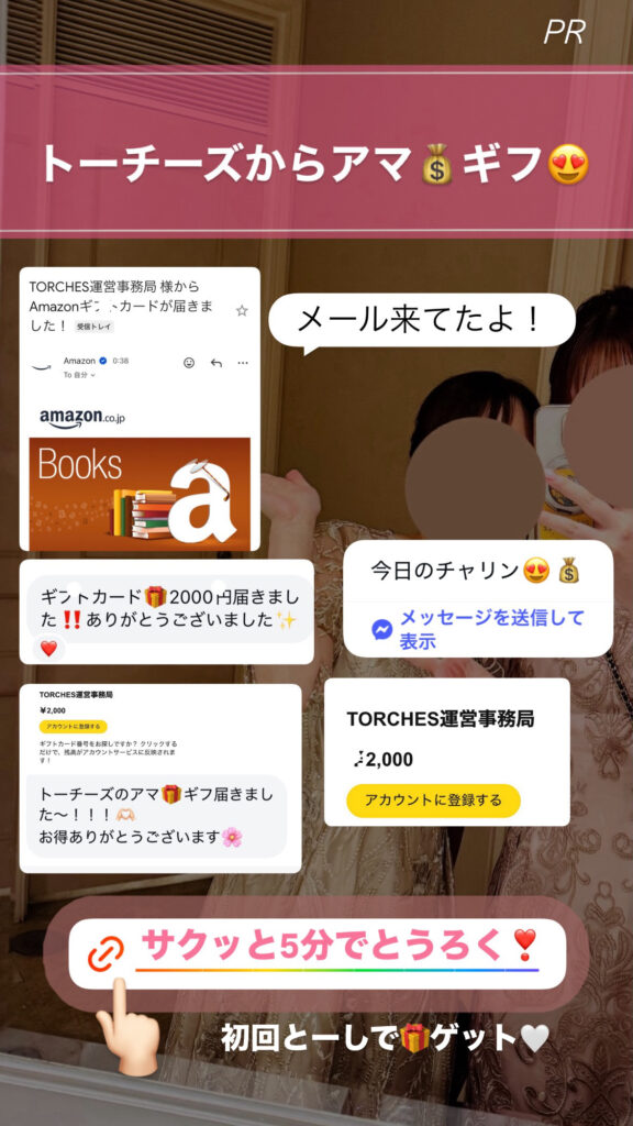 まずはTORCHESの登録をしてみて、投資体験ついでにアマギフをもらっちゃってください💗